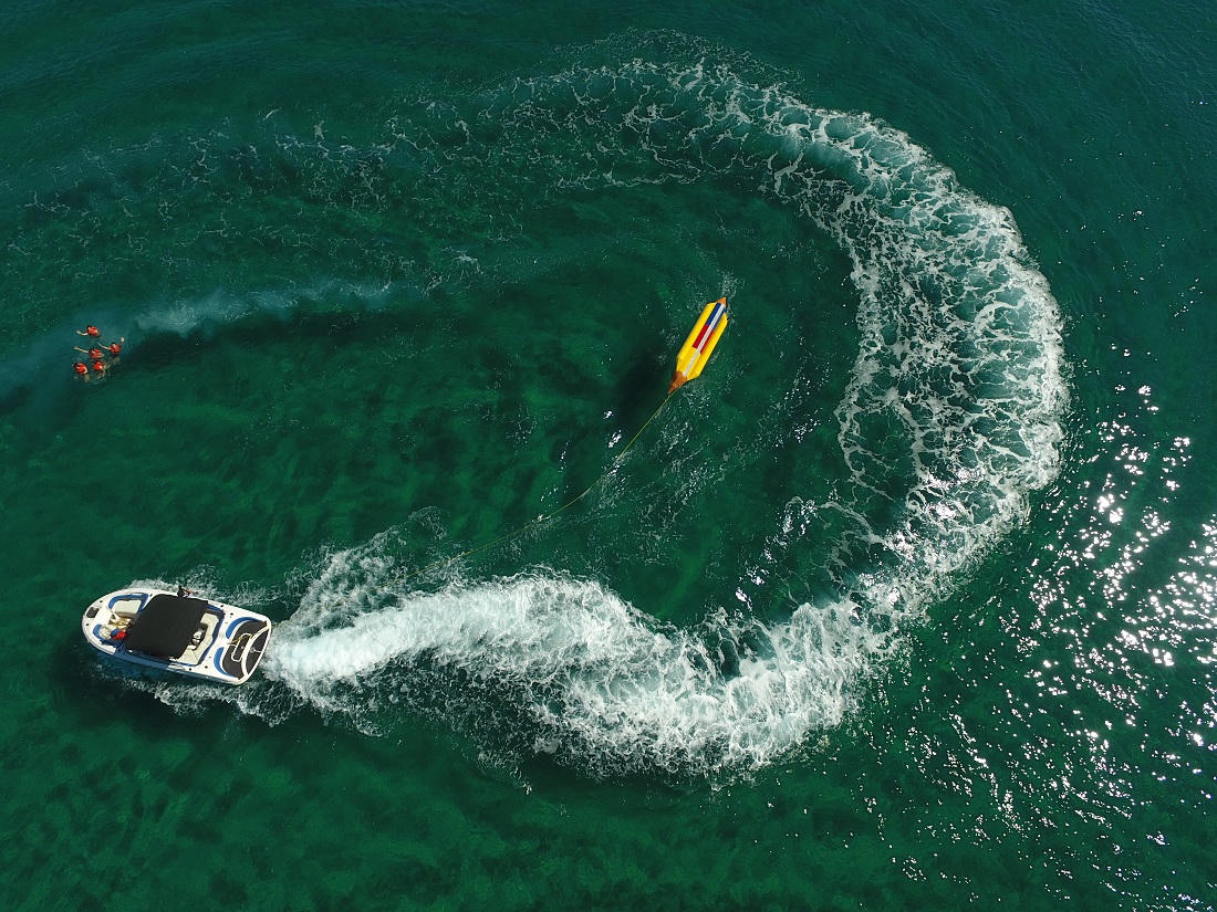 Một trong những hoạt động được các cô gái ưa thích nhất là trò chơi cảm giác mạnh trên biển – thuyền chuối