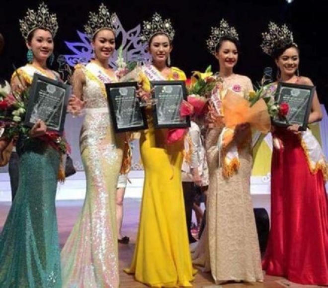 | Tài khoản Facebook cũng tung ra bức ảnh chứng minh Ngọc Trân từng đoạt vương miện á hậu ở cuộc thi Kim Mộc Thủy Hỏa Thổ (đứng thứ 2, từ phải qua) |