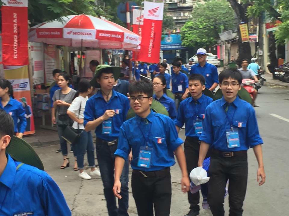 (PLO) - Từ sáng sớm, rất đông thí sinh và phụ huynh đã tập trung tại các điểm thi ở Hà Nội. Lực lượng sinh viên tình nguyện cũng bắt đầu công việc tiếp sức mùa thi của mình với các hoạt động như hướng dẫn thí sinh, trông giữ xe, thông tuyến giao thông...