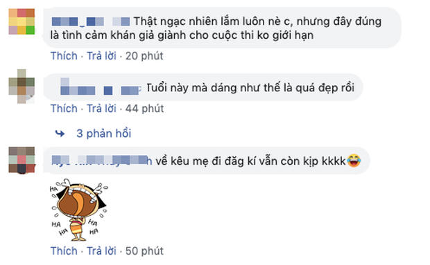 Cư dân mạng không ngớt lời khen cho tinh thần cũng như vóc dáng trẻ trung của bà Trần Bích Nga: "Thật ngạc nhiên lắm luôn nè chị, nhưng đây đúng là tình cảm khán giả giành cho cuộc thi không giới hạn", "Tuổi này mà dáng như thế là quá đẹp rồi", "Dáng quá đẹp so với lứa tuổi, hơn cả tuổi mẹ mình mà đẹp hơn mình"...