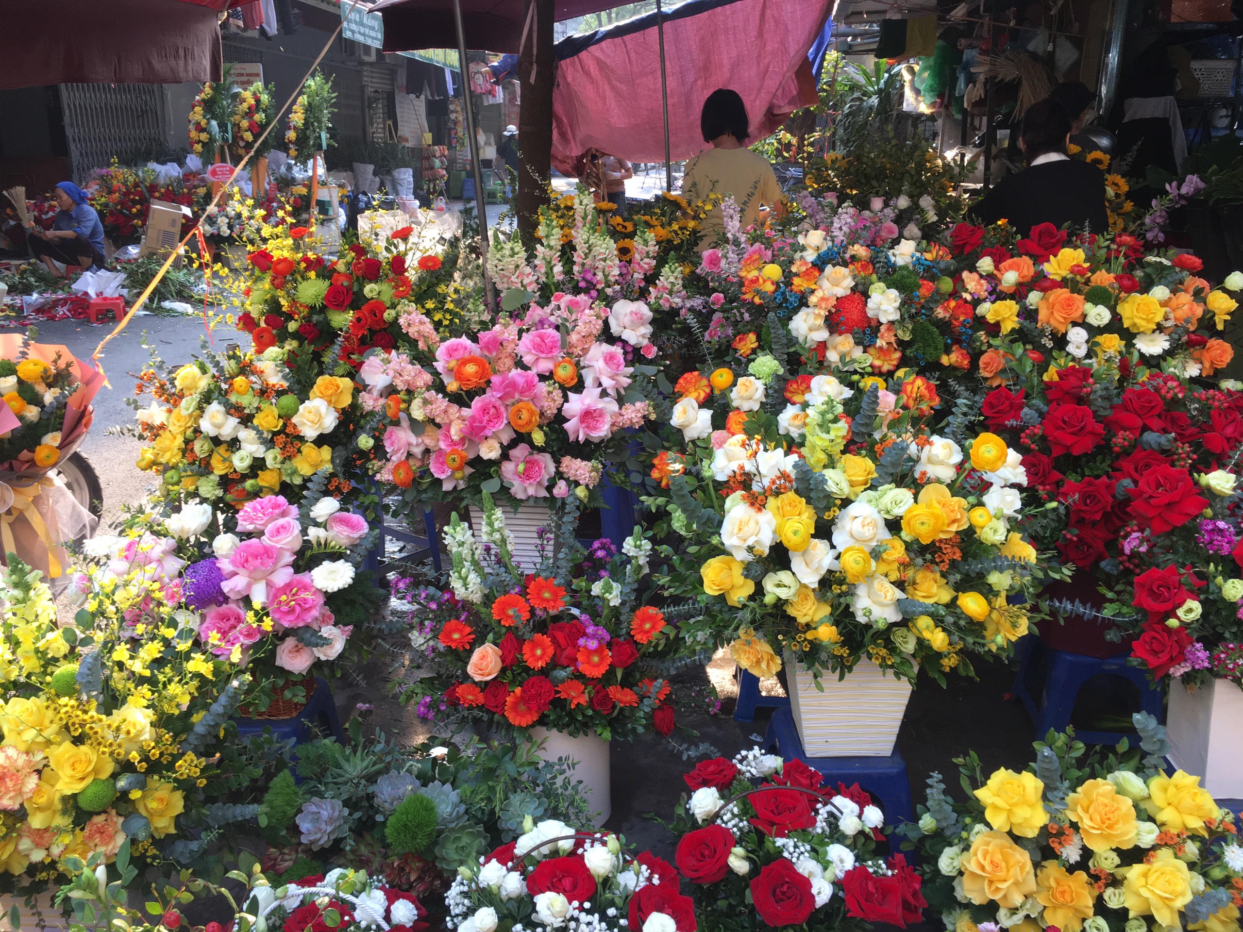 Dạo qua các phố chuyên bán hoa tươi như: Nghĩa Tân, Trần Duy Hưng, Nguyễn Chí Thanh, Yên Lãng, Phan Đình Phùng... thị trường cũng khá trầm lắng.