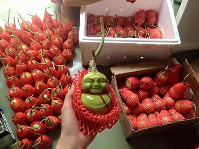 Người bán cho biết, loại dưa lê nói trên được trồng ở Trung Quốc có 3 hình dáng cơ bản, hình thần tài có chữ phúc, hình ông thọ, và hình em bé nhân sâm (trong phim Tây Du Ký).