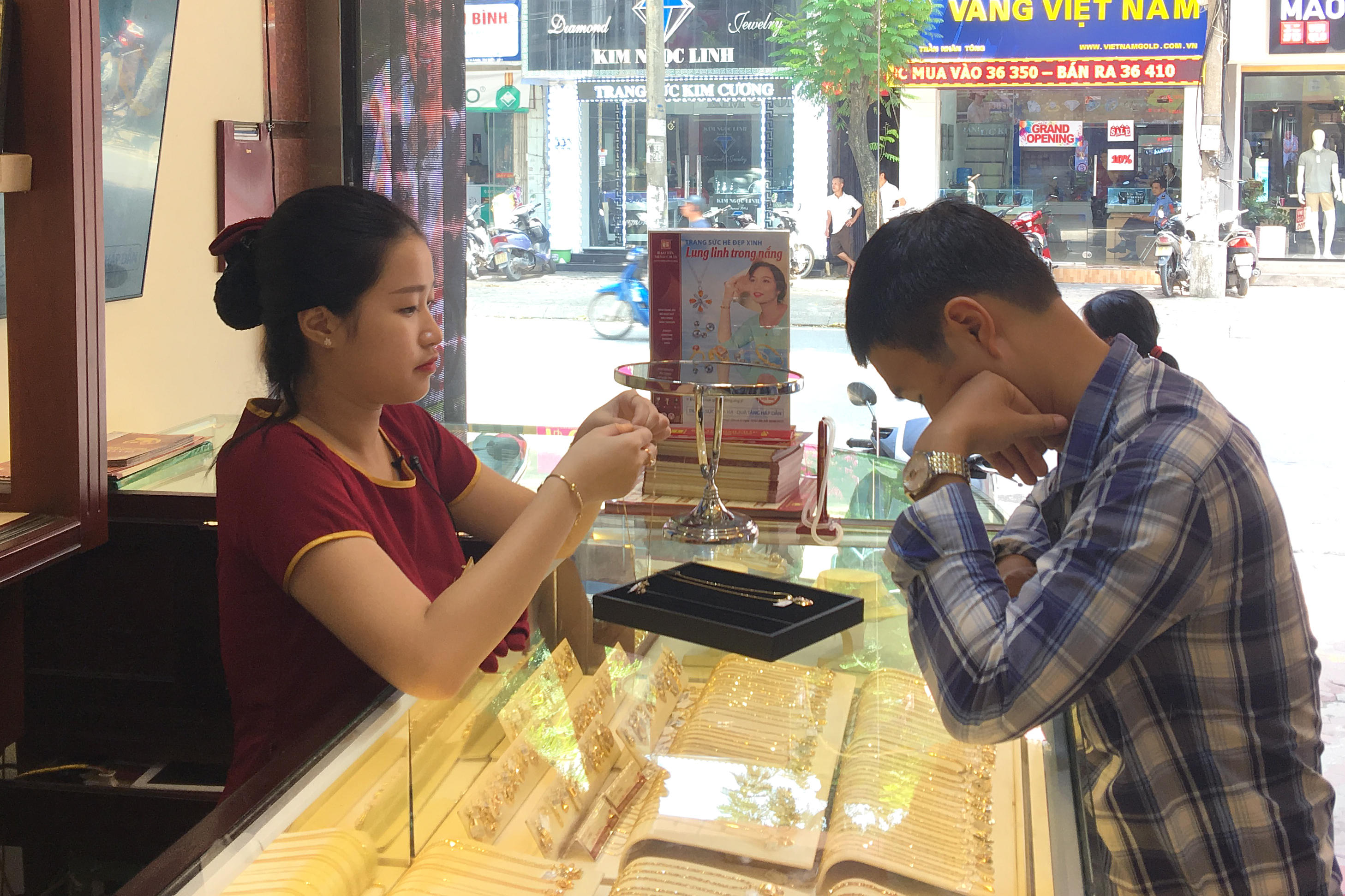 Theo khảo sát của phóng viên, nhu cầu mua trang sức nam trên thị trường tăng khá mạnh trong khoảng gần 2 năm trở lại đây. Mặt hàng trang sức nam bán ra tại các công ty vàng lớn có doanh số tăng dần. Bà Trần Hồng Thúy - Trưởng phòng Kinh doanh Vàng trang sức Công ty Vàng bạc đá quý Bảo Tín Minh Châu cho biết, doanh số bán trang sức nam 6 tháng đầu năm 2017 tăng gấp khoảng 3 lần 6 tháng cuối năm 2016. Số lượng món/bộ trang sức nam bán ra của Công ty trong tháng 7 vừa qua tăng gấp khoảng 1,5 lần tháng 6 và gấp 2 lần tháng 5/2017.