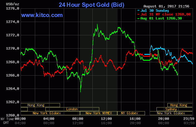 Đầu giờ sáng 2/8 (giờ Việt Nam), giá vàng thế giới giao ngay đứng ở mức 1.266,5 USD/ounce. Giá vàng giao tháng 12 trên sàn Comex New York giảm 1,1 USD xuống 1.272,3 USD/ounce.