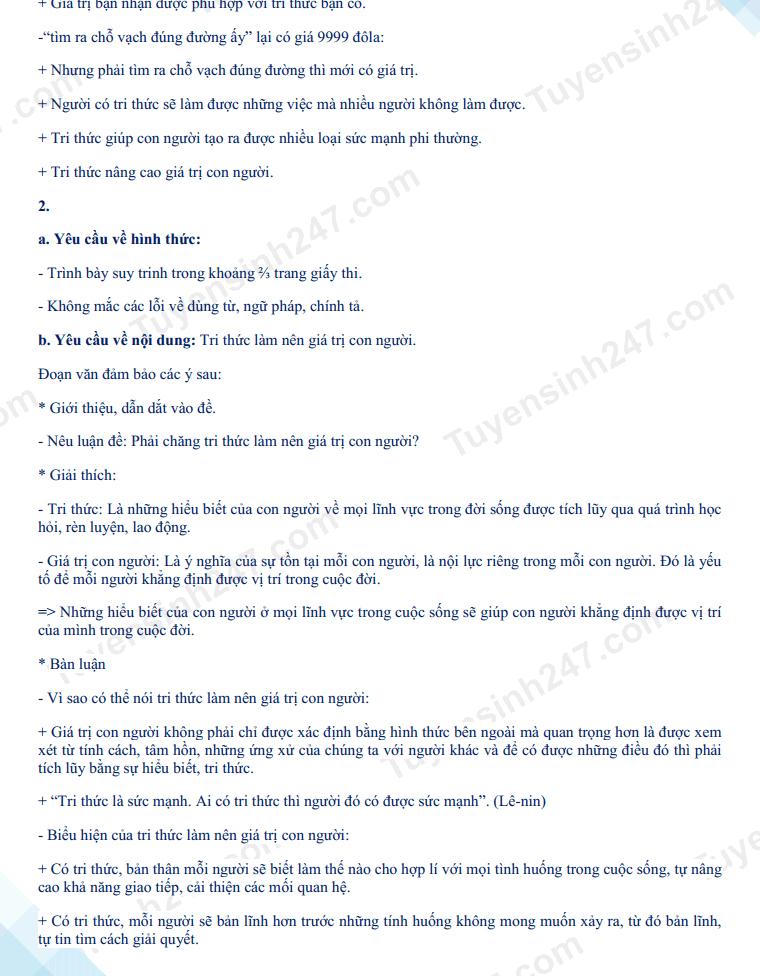 Gợi ý đáp án môn Ngữ văn: