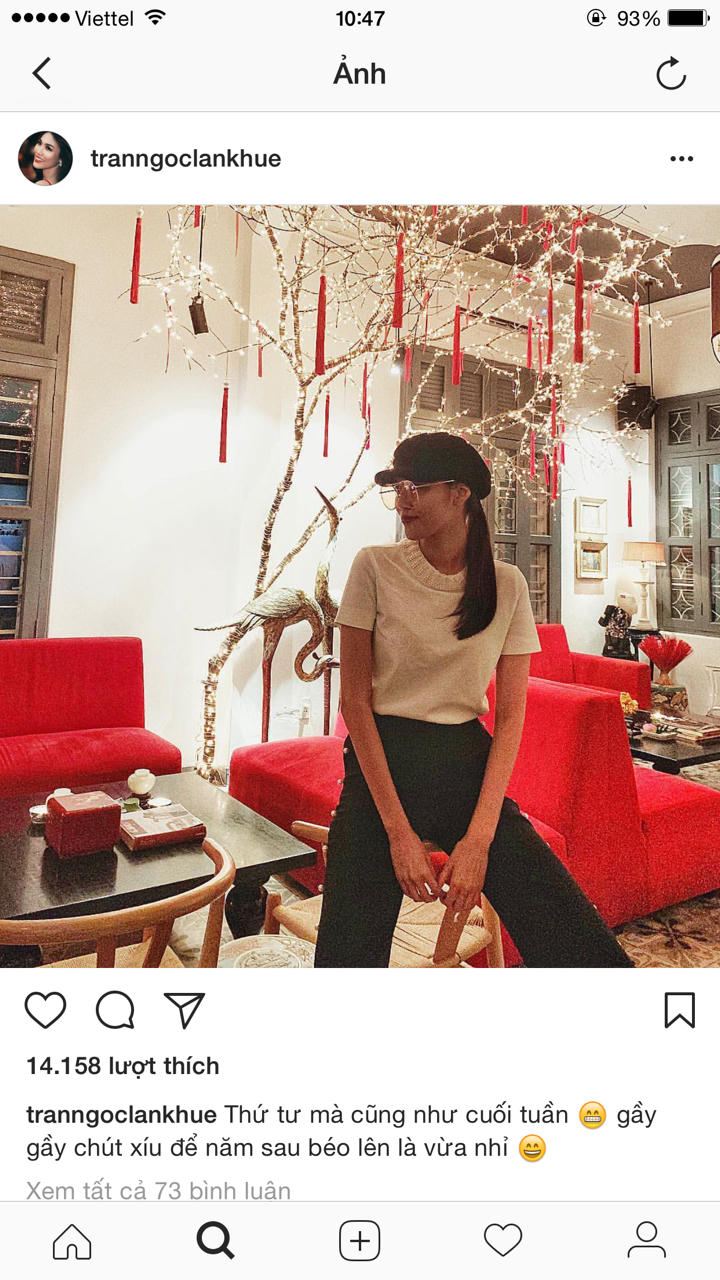 Trên trang cá nhân, Lan Khuê chia sẻ bức ảnh khoe vóc dáng mảnh mai, chuẩn siêu mẫu, kèm theo dòng status úp mở của người đẹp. “Thứ tư mà cũng như cuối tuần. Gầy gầy chút xíu để năm sau béo lên là vừa nhỉ”, Lan Khuê viết.