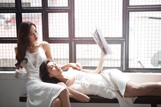 3 chân dài trông tươi tắn, quyến rũ với những trang phục gam trắng tinh khôi của nhà thiết kế Luci, khác hẳn hình ảnh cá tính của họ khi còn ở nhà chung.