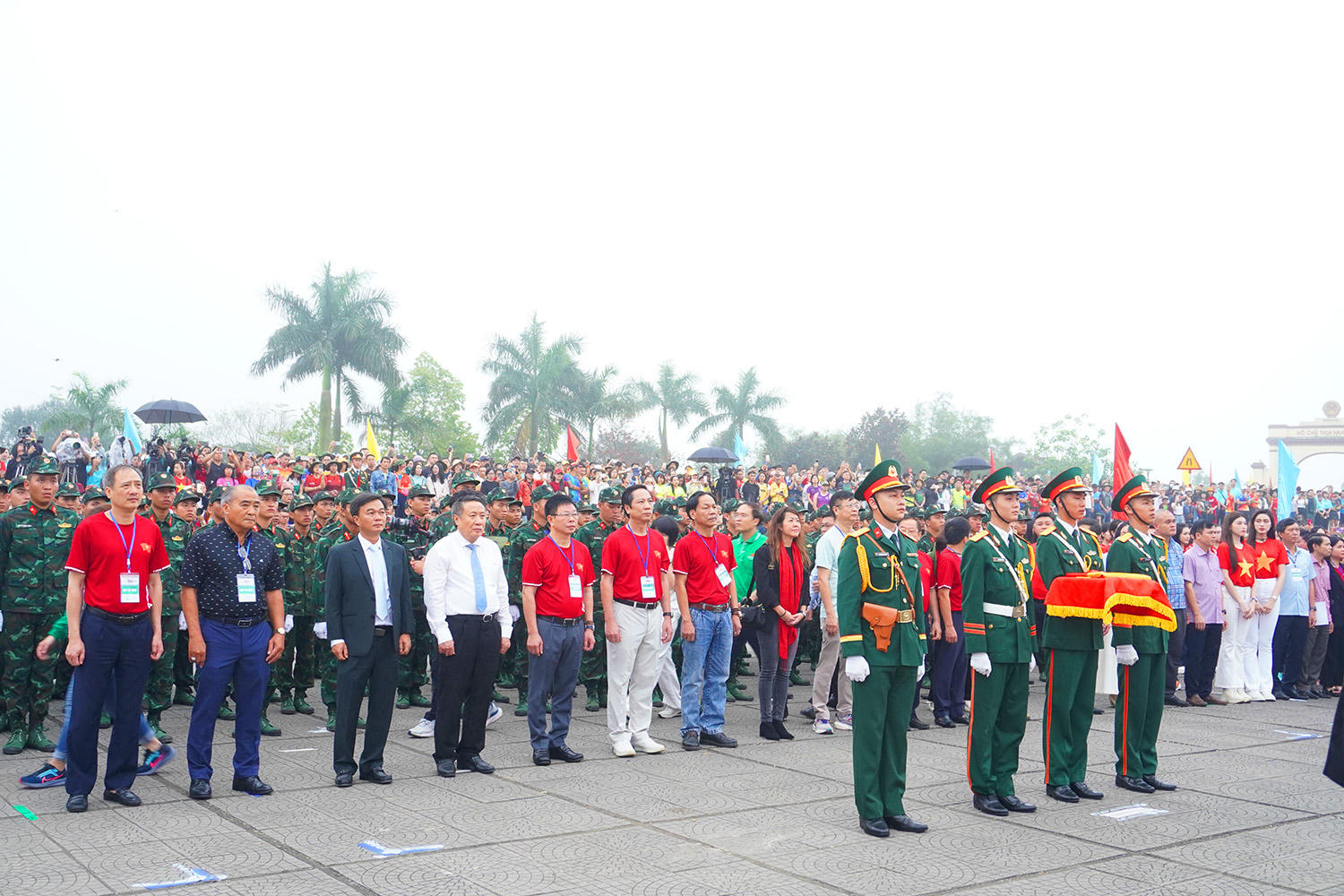 Trong không khí trang nghiêm, lá cờ Tổ quốc từ từ kéo lên trên cột cờ giới tuyến Hiền Lương – Bến Hải trong sự xúc động của hàng nghìn vận động viên, người dân và du khách. Tại buổi lễ, các đại biểu dành một phút mặc niệm tưởng nhớ Chủ tịch Hồ Chí Minh và những người con ưu tú của quê hương, đất nước đã hy sinh xương máu vì độc lập tự do của Tổ quốc.