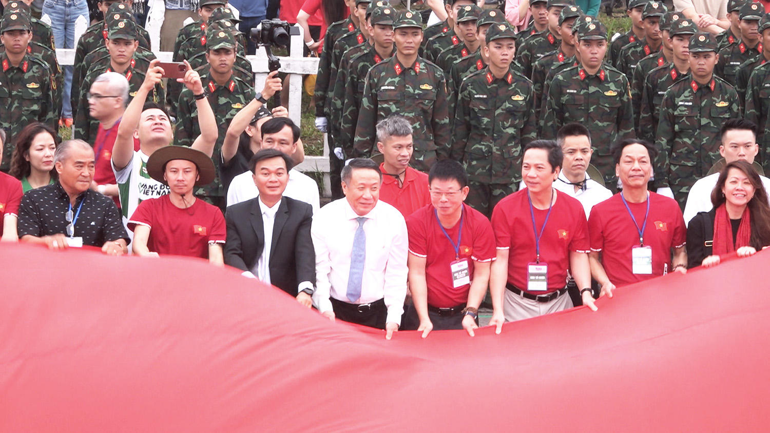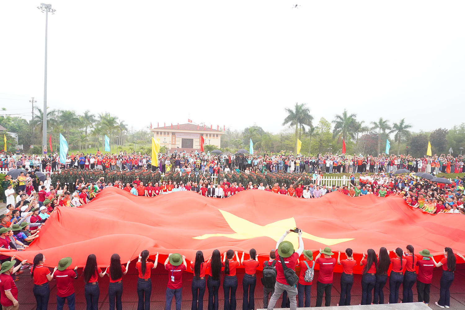Kết thúc lễ Thượng cờ và khai mạc Giải vô địch quốc gia Marathon và cự ly dài Báo Tiền Phong lần thứ 66, Ban tổ chức cùng đại biểu và các vận động viên đã trải lá cờ Tổ quốc rộng 250m² tại khu di tích lịch sử quốc gia đặc biệt Đôi bờ Hiền Lương – Bến Hải.