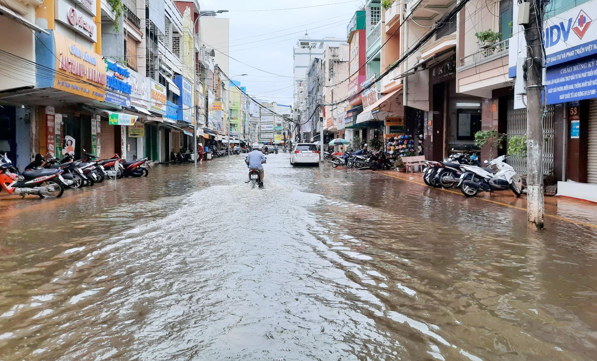 Theo đó, mưa lớn kéo dài khiến nhiều tuyến đường ở thành phố Cà Mau bị ngập nước kéo dài, dẫn đến hư hỏng cục bộ nhiều vị trí, gây ảnh hưởng lớn đến việc đi lại của người dân…Tại các tuyến đường thành phố Cà Mau như Ngô Quyền; Nguyễn Trãi; Trần Hưng Đạo; Phan Ngọc Hiển; Hùng Vương;…đường bị ngập sâu khi mưa to hoặc thủy triều dâng cao. Trong khi chờ đợi nước rút để tiến hành duy tu, sửa chữa các tuyến đường bị hư hỏng, Cơ quan chức năng đã bố trí cắm biển cảnh báo, báo hiệu vị trí đường bị ngập sâu, nguy hiểm để phòng, tránh tai nạn giao thông.