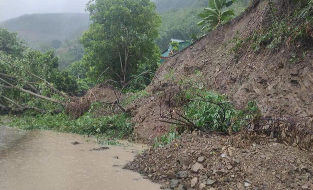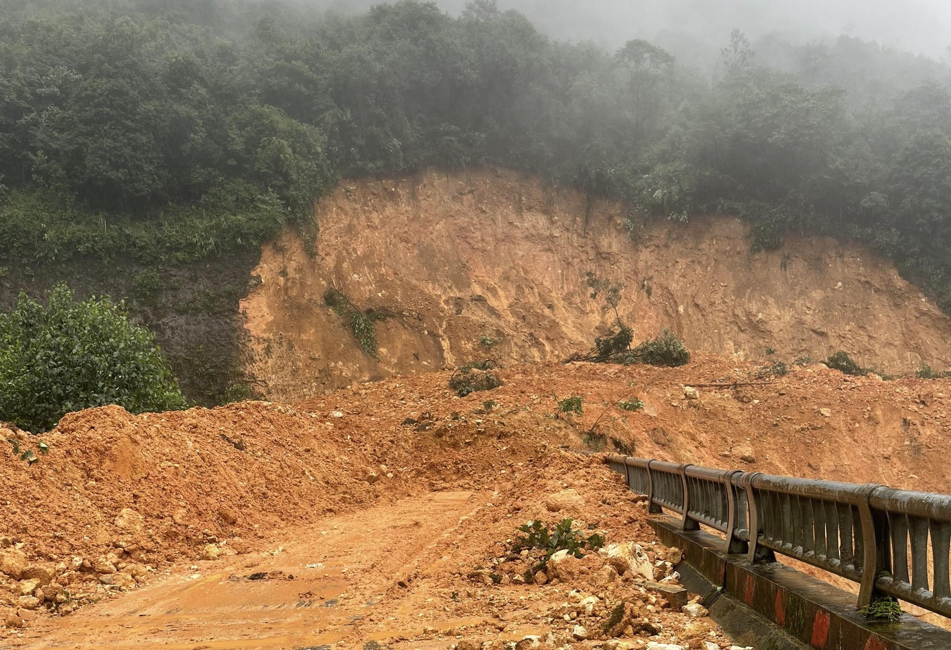 Mưa bão làm nhiều tuyến đường bị sạt lở gây ách tắc giao thông. |