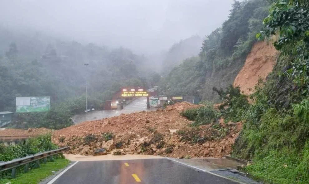 Tại Lai Châu, đêm 8/9 và rạng sáng 9/9, mưa lớn kéo dài liên tục khiến một lượng lớn đất đá sạt lở từ taluy dương đổ sập chắn ngang quốc lộ 4D khiến các phương tiện bị ùn tắc kéo dài.