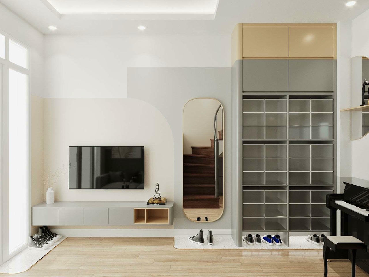 | Cạnh đàn piano là tủ giày nhựa trong suốt, đảm bảo sự sạch sẽ, gọn gàng nhưng vẫn có tính thẩm mỹ cao. |