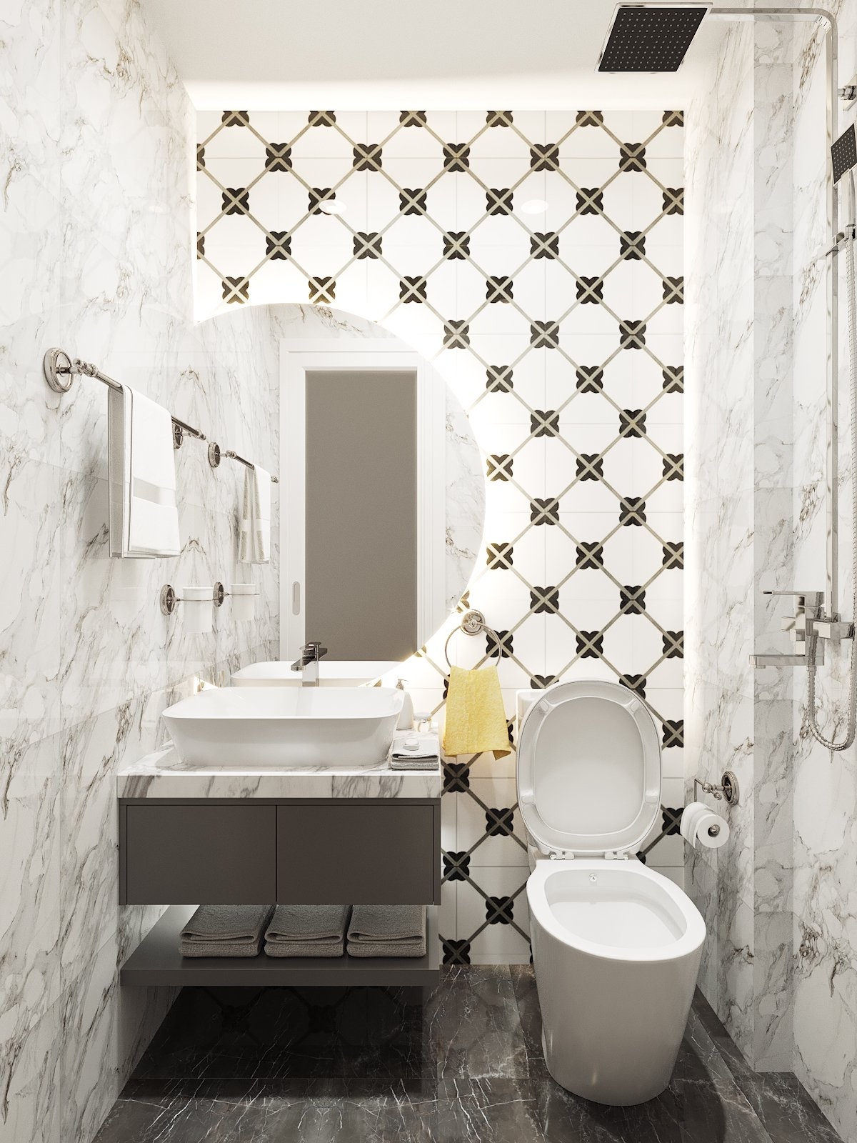 | Phòng vệ sinh hẹp nhưng vẫn sang trọng đến bất ngờ. |