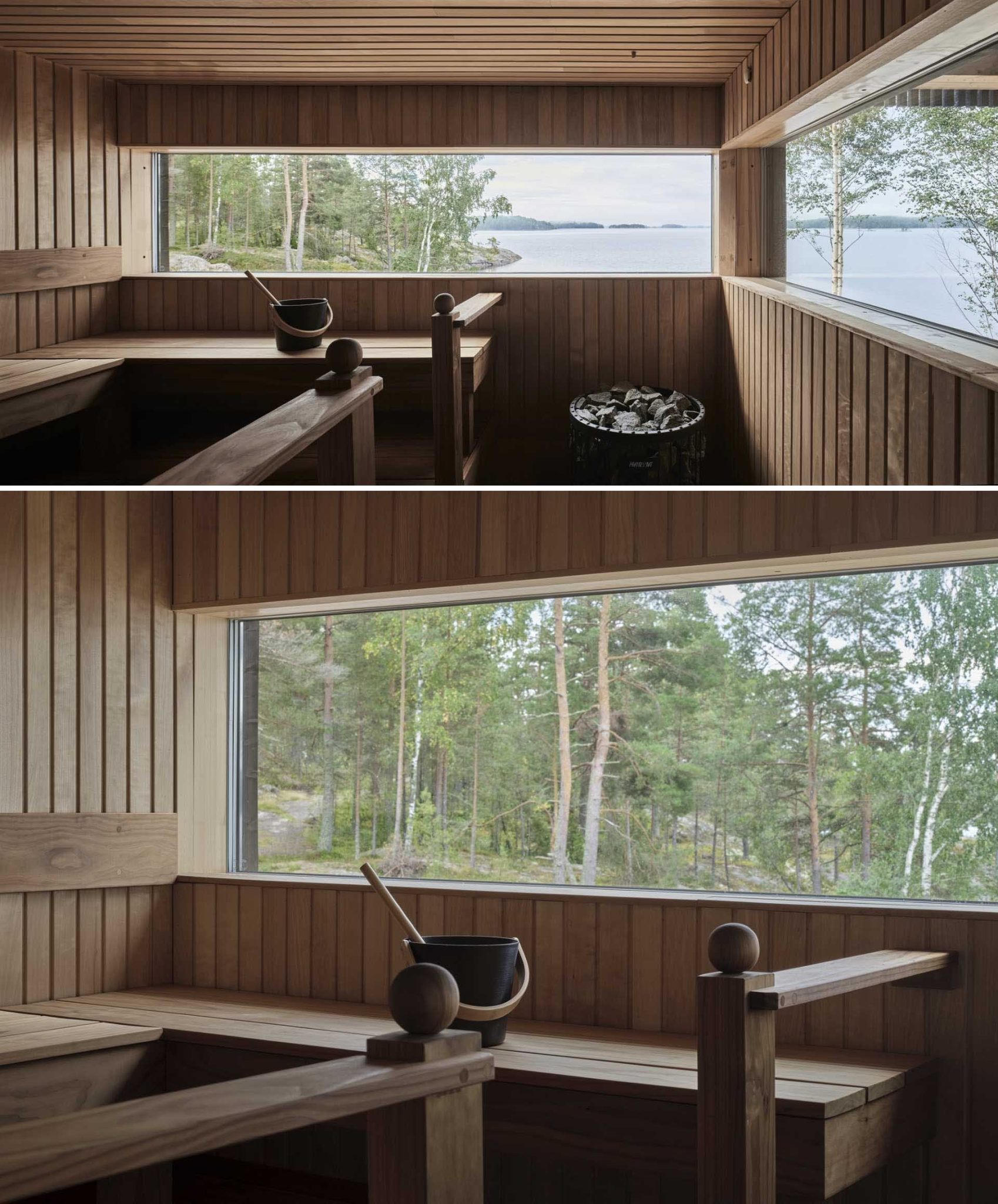 Bên trong phòng xông hơi khô, các cửa sổ nằm ngang tạo khung cảnh hoàn hảo.