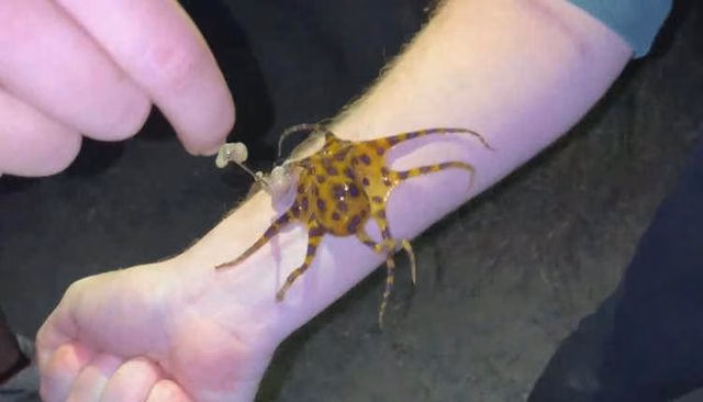 Những đốm xanh sáng chỉ nhìn thấy trên cơ thể bạch tuộc khi nó bị kích động hay đe dọa. Từ đoạn video, người xem có thể thấy rõ các đốm sáng kia, chứng tỏ, hai vị khách có nguy cơ bị cắn rất cao.