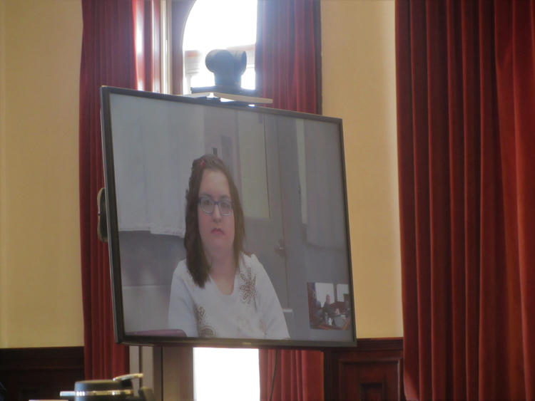 Samantha Mears dự tòa qua camera từ trong bệnh viện. Ảnh: Traci Rosenbaum/Great Falls Tribune. |