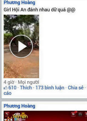 (PLO) - Ngày 12/5, trên mạng xã hội facebook xuất hiện một clip quay cảnh 2 thiếu nữ đánh nhau nghi xảy ra trên địa bàn thành phố Hội An (tỉnh Quảng Nam). Đáng nói, trong lúc 2 bạn nữ này đánh nhau, nhiều học sinh đứng xem, reo hò và quay lại clip để tung lên mạng.