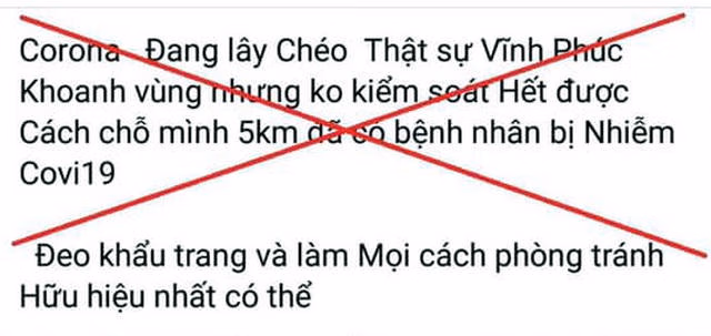 Trước đó, L.T.G. đã đăng tải lên facebook cá nhân của mình với nội dung: “Corona đang lây chéo thật sự Vĩnh Phúc khoanh vùng nhưng không kiểm soát hết được cách chỗ mình 5km đã có bệnh nhân bị Nhiễm Covi19”.