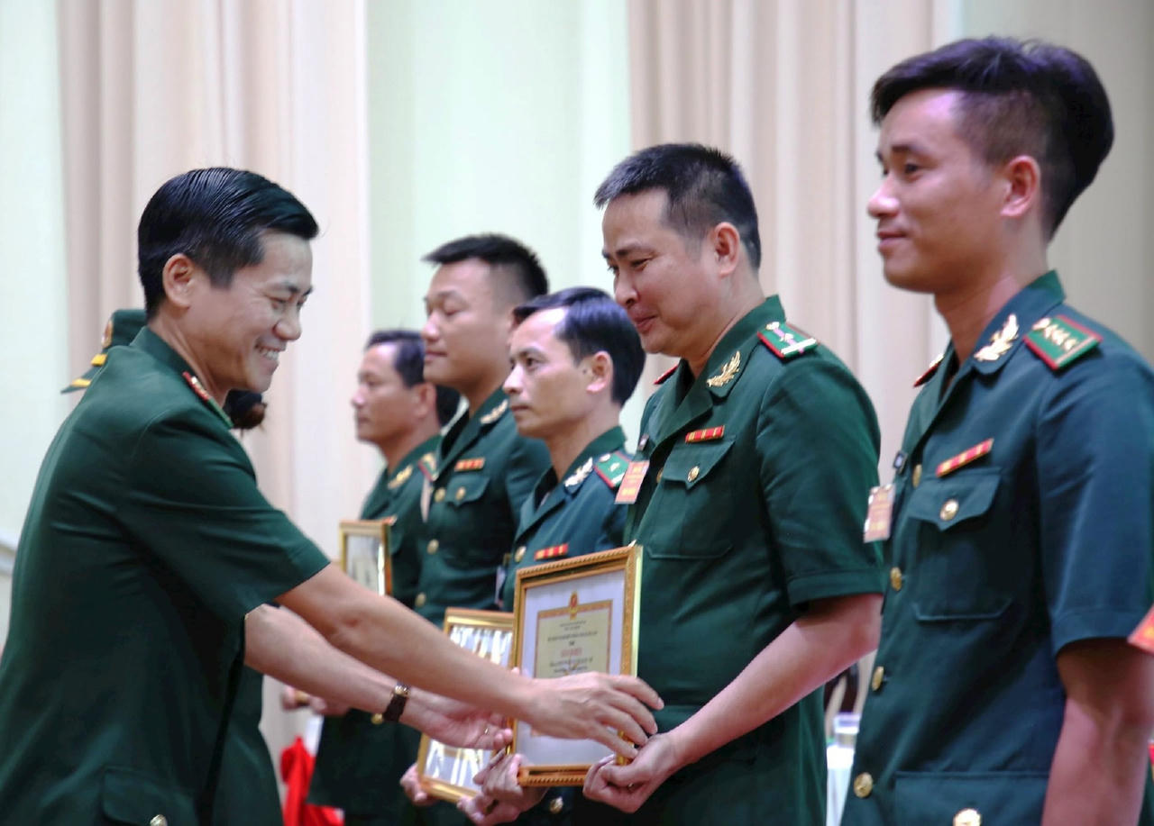 Bác sĩ Nguyễn Văn Quốc Trí nhận Giấy khen biểu dương điển hình tiên tiến của Bộ Chỉ huy Bộ đội Biên phòng tỉnh Quảng Nam. (Ảnh: Đăng Nguyên) |