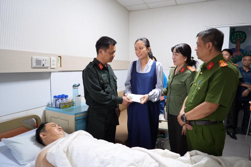 Trưa 19/3, Đại tá Đậu Xuân Bảo - Phó Giám đốc Công an tỉnh Lâm Đồng đã tổ chức đoàn đến thăm hỏi, động viên Thiếu tá Phạm Nguyễn Đức Lâm, cán bộ Công an phường Mũi Né bị thương trong khi thi hành nhiệm vụ, hiện đang điều trị tại Bệnh viện Đa khoa An Phước.