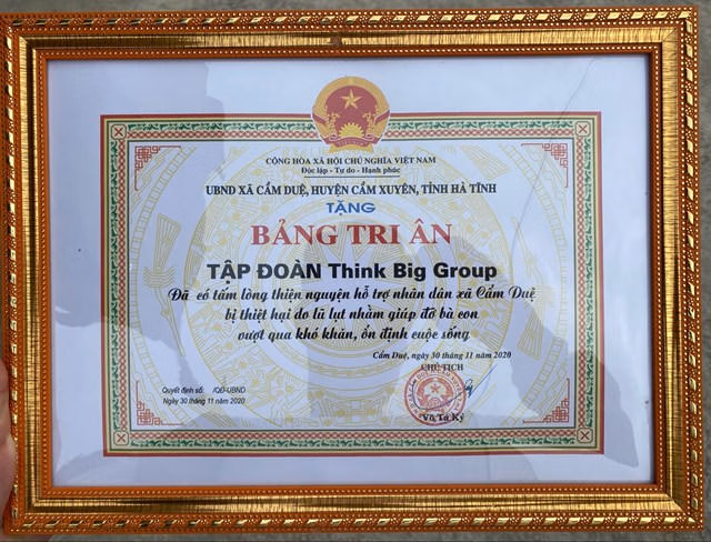 (PLVN) - Chung tay hỗ trợ người dân miền Trung khắc phục hậu quả do thiên tai, lũ lụt gây ra, Tập đoàn Think Big Group cùng CLB ACE và các mạnh thường quân trong CLB đã trao tặng hàng trăm chiếc xe đạp, học bổng cùng nhiều phần quà và nhà tình nghĩa cho bà con tại huyện Lộc Hà và huyện Cẩm Xuyên, Hà Tĩnh với tổng giá trị lên tới hơn 1 tỷ đồng.