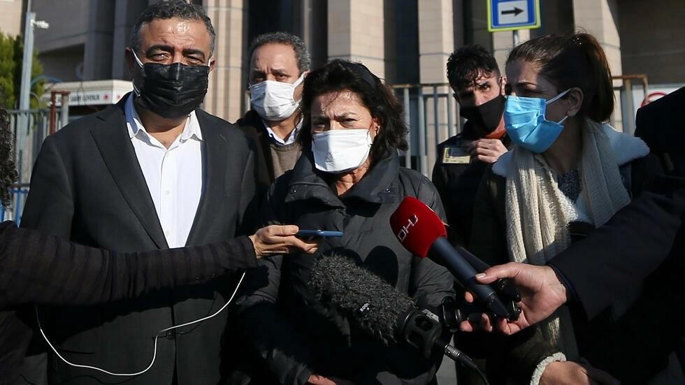 Ayse Bugra, vợ của Osman Kavala, phát biểu bên ngoài một tòa án ở Istanbul vào ngày 5/2/2021. Ảnh: AP |