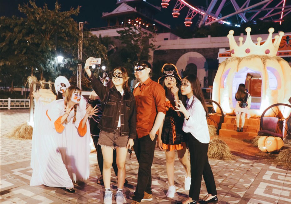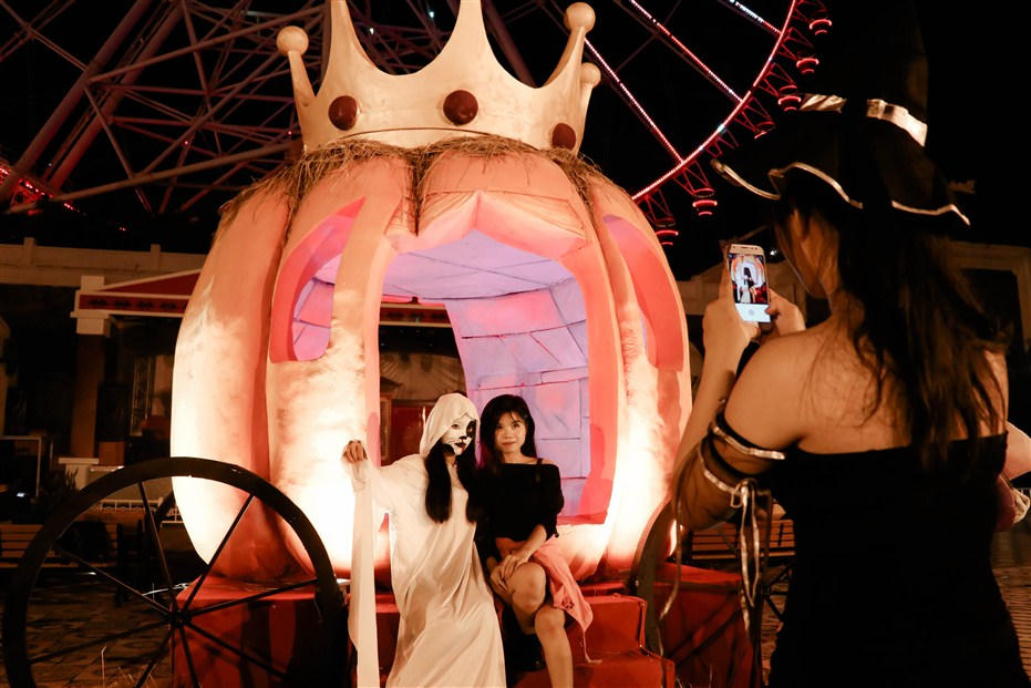 Với những du khách đam mê sắc màu Halloween ma mị, “vương quốc bí ngô” sẽ đưa bạn đến với bữa tiệc của giới quý tộc ma cà rồng. Được kết tạo từ quả bí khổng lồ cao hơn 2 mét, ngôi nhà bí ngô nay khu Sun Wheel được bài trí với bàn ăn ở ngay trung tâm, tái hiện bữa tiệc đêm của gia đình quý tộc ma cà rồng.