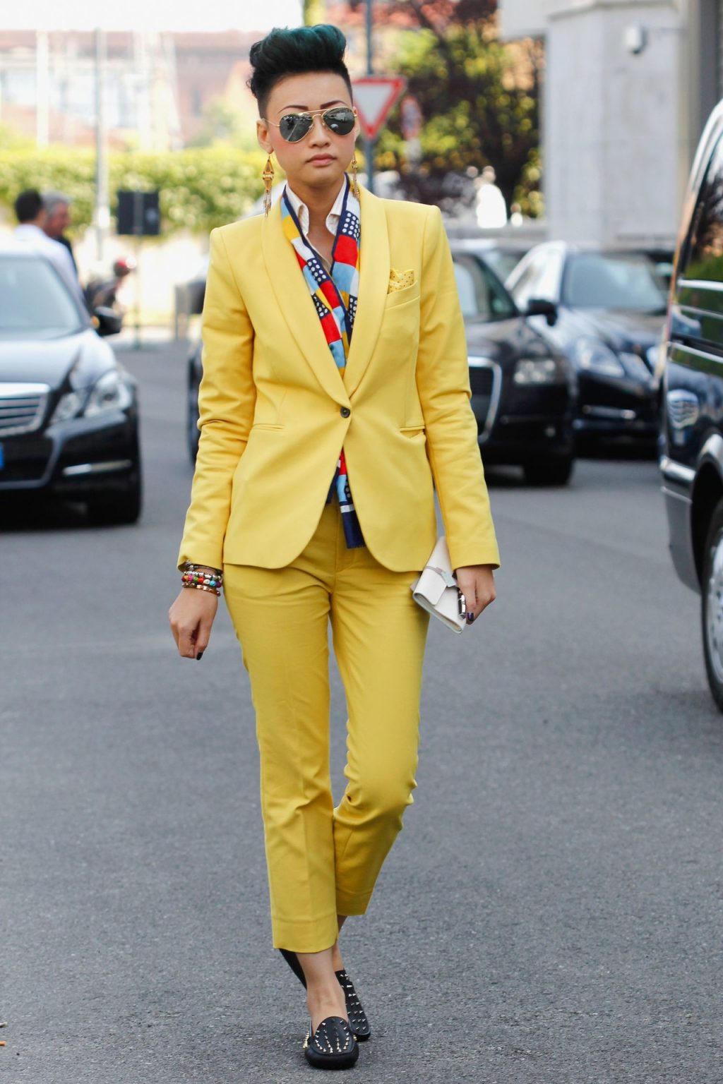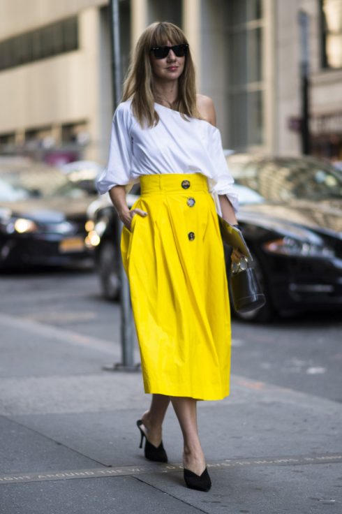 Bên cạnh màu tím đậm, sắc vàng mù tạt đang gây thương nhớ cho nhiều tín đồ thời trang. Là gam màu nóng ấm, vàng mù tạt rất phù hợp với làn da của người Châu Á. Với đa dạng item từ jacket đến chân váy buits chì, vàng mù tạt phù hợp với mọi phong cách và dáng người. Tuy vậy, không phải người yêu thời trang nào cũng biết cách kết hợp vàng mù tạt trong phong cách đường phố.