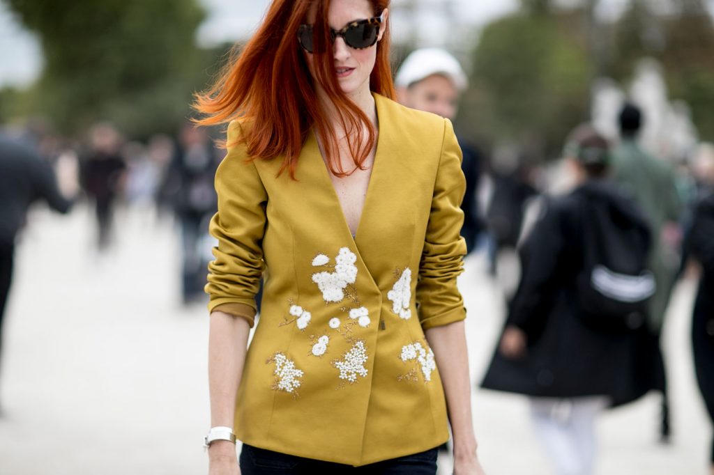 Áo blazer vàng mù tạt, dù có hạo tiết hay không, đều sẽ phù hợp với nàng công sở và người theo style urban chic. Một đôi giày cao gót là không thể thiếu nếu bạn muốn nhấn mạnh đường cong cơ thể của mình.