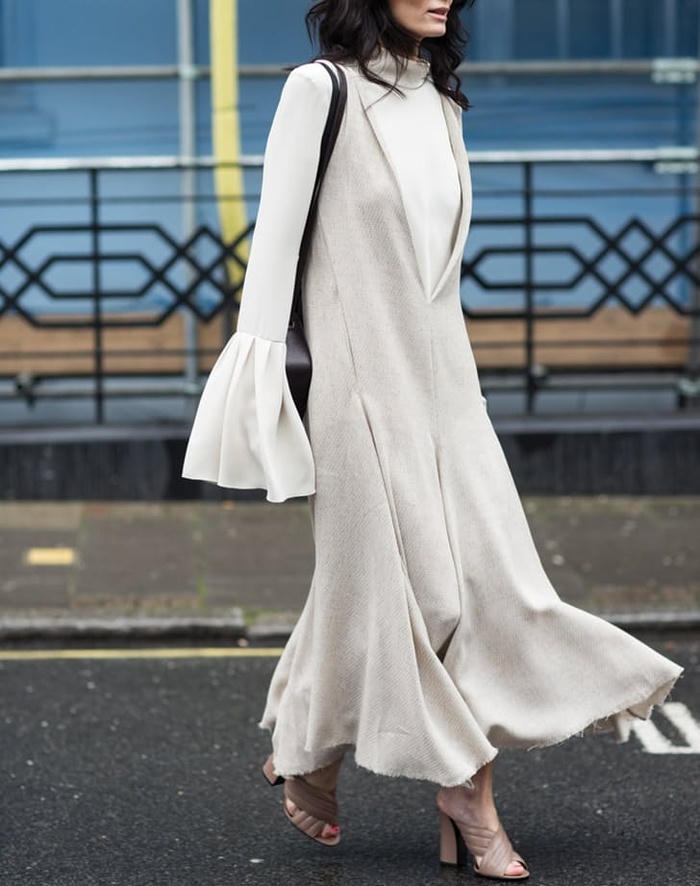 Mặt khác, một chiếc váy flowy với tay áo hình chuông cũng là sự lựa chọn tuyệt vời cho những bữa tiệc cuối năm.