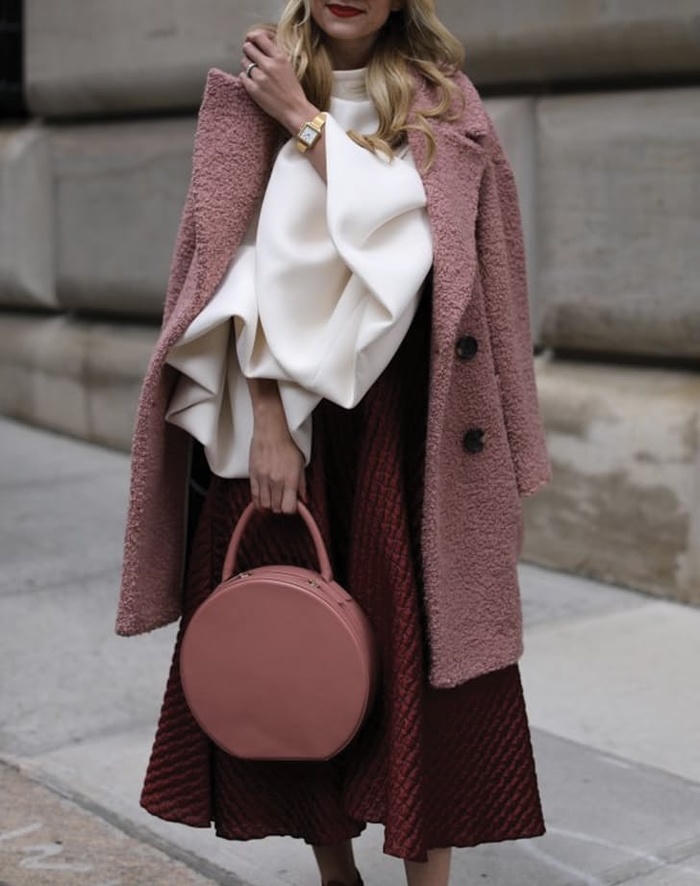 Hay diện chân váy midi và áo khoác dạ sành điệu cũng phù hợp khi mix với áo tay chuông.
