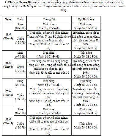 Trung Bộ duy trì hình thái thời tiết ban ngày trời nắng, có nơi nắng nóng. Chiều tối và đêm nguy cơ xảy ra mưa rào và dông ở một vài nơi.