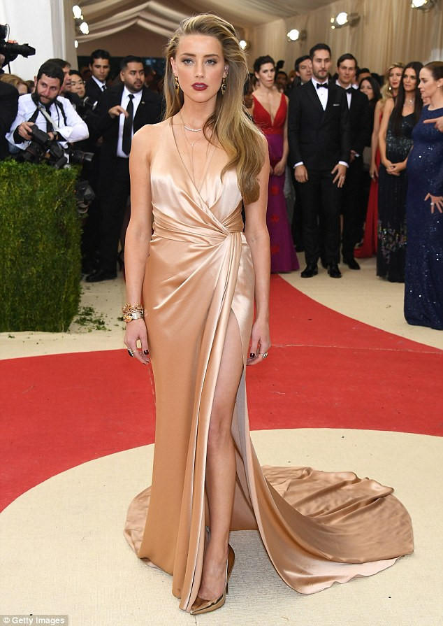 Tại sự kiện thời trang Met Gala 2016, Amber là một trong số sao nữ mặc đẹp nhất. Cô mang tới bộ đầm lụa màu nude, xẻ tà sâu ăn ý với kiểu tóc đánh bồng. Amber hoàn thiện diện mạo với đôi giày sequin ánh vàng cũng nữ trang đồng bộ.