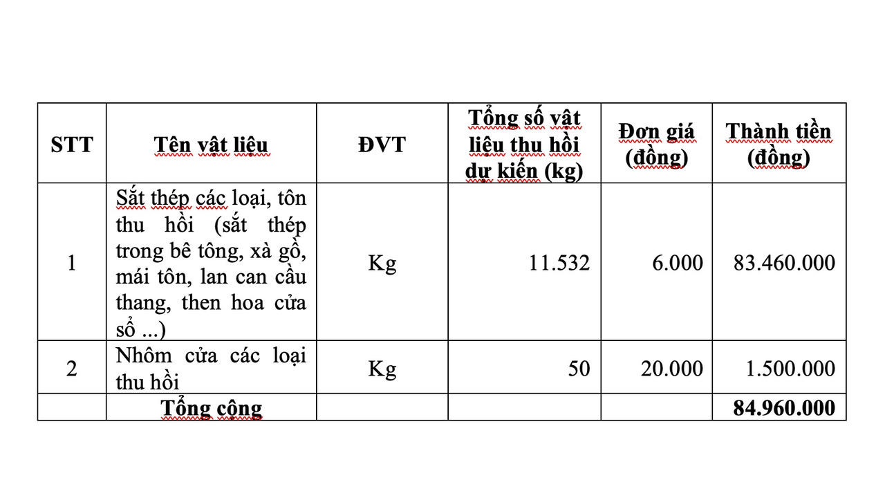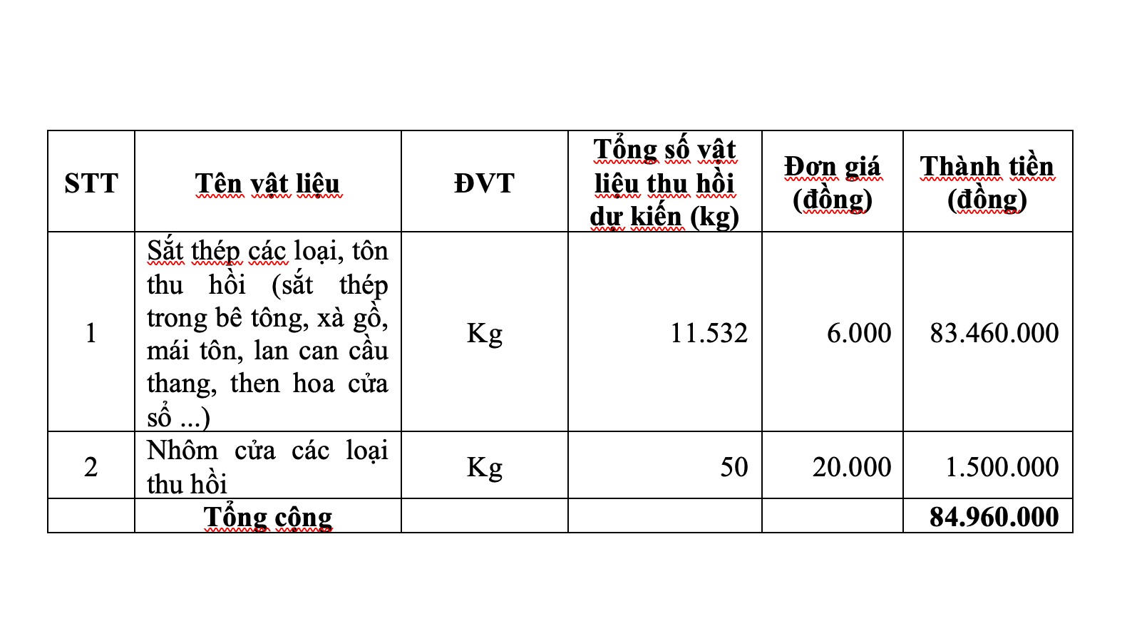 4. Tài sản đấu giá: giá trị thu hồi tài sản sau thanh lý của Trường tiểu học và Trung học cơ sở Võ Thị Sáu quản lý, sử dụng; địa điểm để tài sản: tổ 12, phường Thống Nhất, tỉnh Phú Thọ, gồm: