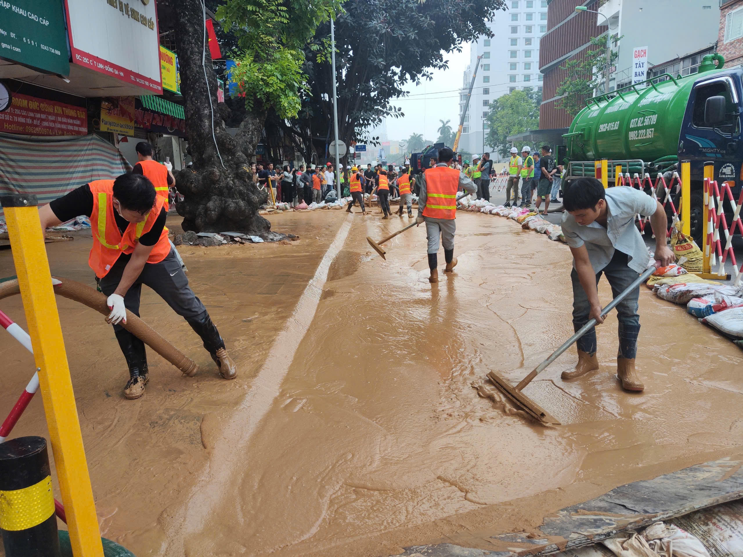 Nhà thầu đã thực hiện các biện pháp khắc phục, huy động tối đa nhân lực, các xe hút bùn, thu gom và xử lý bùn tại hiện trường. |