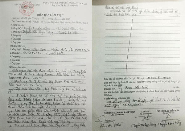 Kết thúc buổi làm việc, Thanh tra Sở Y tế TP HCM ghi nhận ý kiến để giải quyết.
