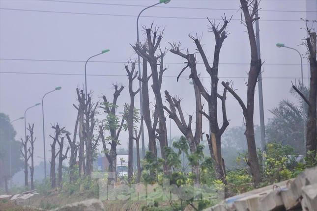 Hàng cây xanh chết khô ở Đại lộ Thăng Long. Ảnh: Duy Phạm