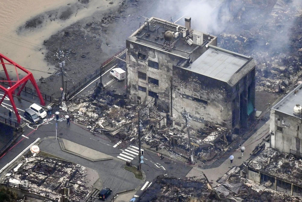 Các tòa nhà cháy rụi do hỏa hoạn bùng phát sau động đất tại tỉnh Ishikawa, Nhật Bản, ngày 3/1/2024. (Ảnh: Kyodo/TTXVN)