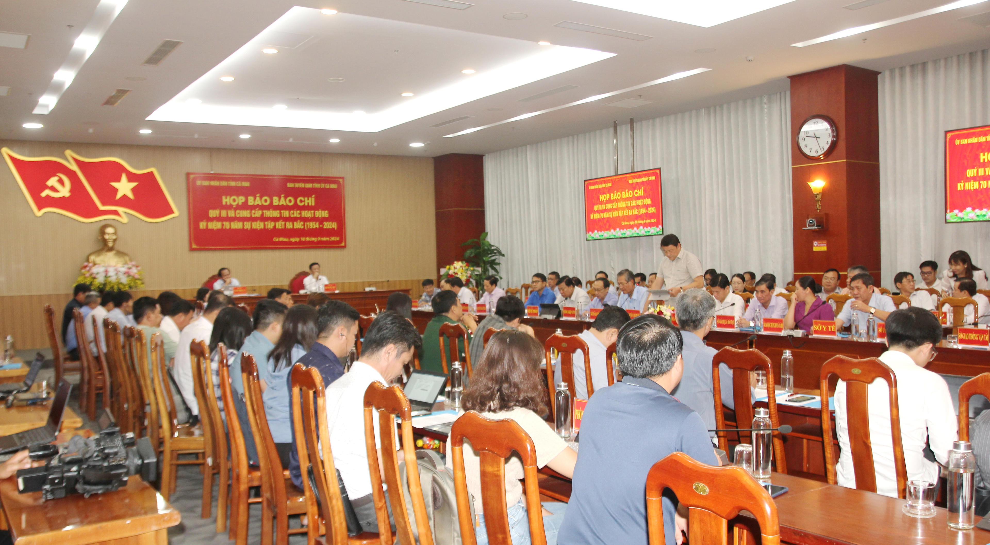 Phát biểu kết luận buổi họp báo, ông Nguyễn Minh Luân - Phó Chủ tịch UBND tỉnh Cà Mau, mong muốn cơ quan báo chí, nhà báo, phóng viên tiếp tục tập trung đẩy mạnh thông tin, tuyên truyền kịp thời các hoạt động kỷ niệm 70 năm Sự kiện tập kết ra Bắc (1954-2024); đường lối, chủ trương của Đảng, chính sách, pháp luật của Nhà nước; tình hình kinh tế - xã hội, công tác xây dựng Đảng, xây dựng chính quyền của tỉnh trong thời gian tới, góp phần khơi dậy tiềm năng và cơ hội phát triển cho Cà Mau, vùng đất cực Nam của Tổ quốc.