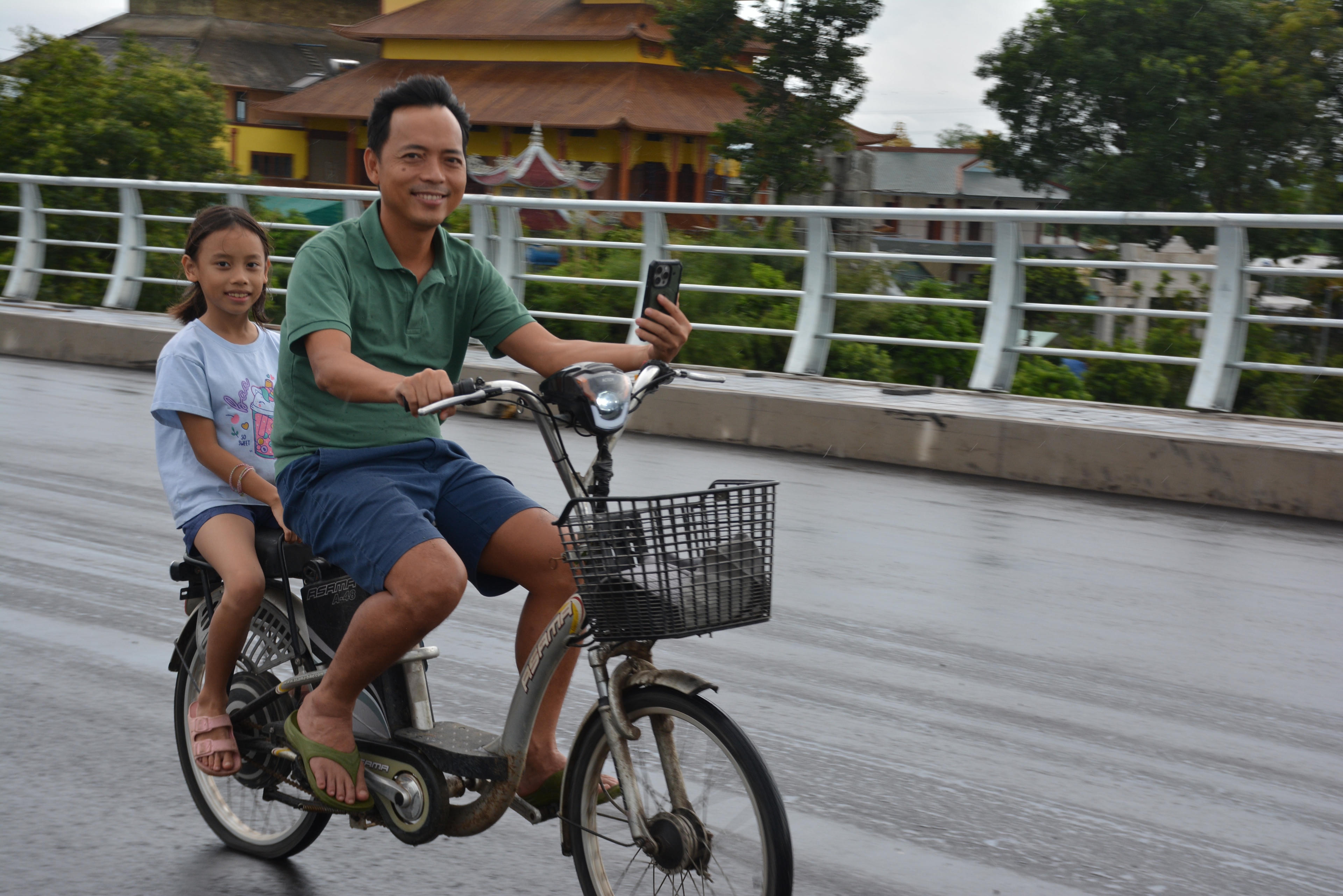 Ông Nguyễn Huỳnh Danh người dân ở TP Tân Uyên (Bình Dương) cho biết, khi có cây cầu Bạch Đằng 2 này thì quá thuận tiện về nhiều thứ, nhất là việc đi lại đỡ phải đi đò rồi chờ đò, mưa to gió lớn cũng an toàn nữa.