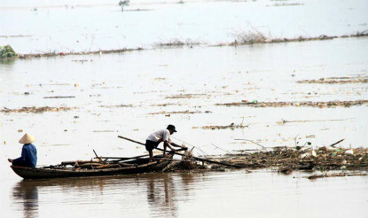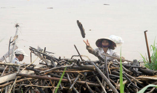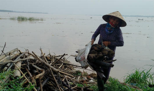 Trong 2 ngày 17 và 18/8, mực nước sông Hồng (đoạn qua địa bàn Phú Thọ) lên cao do ảnh hưởng của xả lũ thủy điện Hòa Bình và mưa kéo dài phía thượng nguồn, khiến cho củi rác trôi về khu vực hạ lưu nhiều.