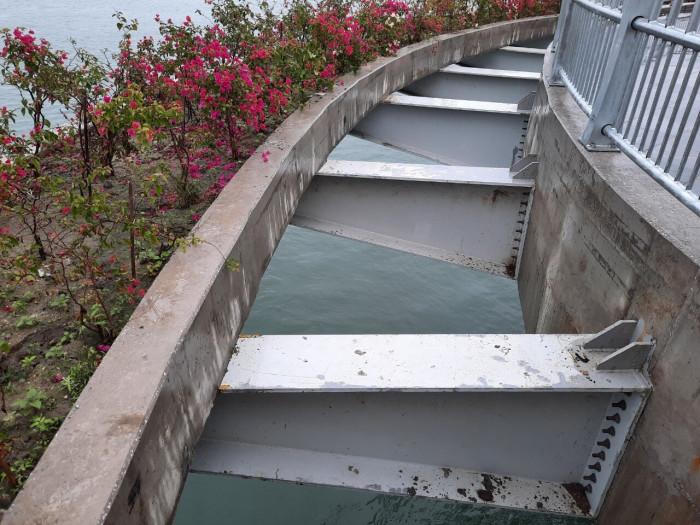 PV Báo Giao thông ghi nhận, ở khu vực các sàn vọng cảnh và bồn hoa trên cầu Tình Yêu có các con sơn từ thân cầu đua ra, ngoài các thanh sắt, vòng xi măng cốt thép thì ở giữa là khoảng trống rất rộng.