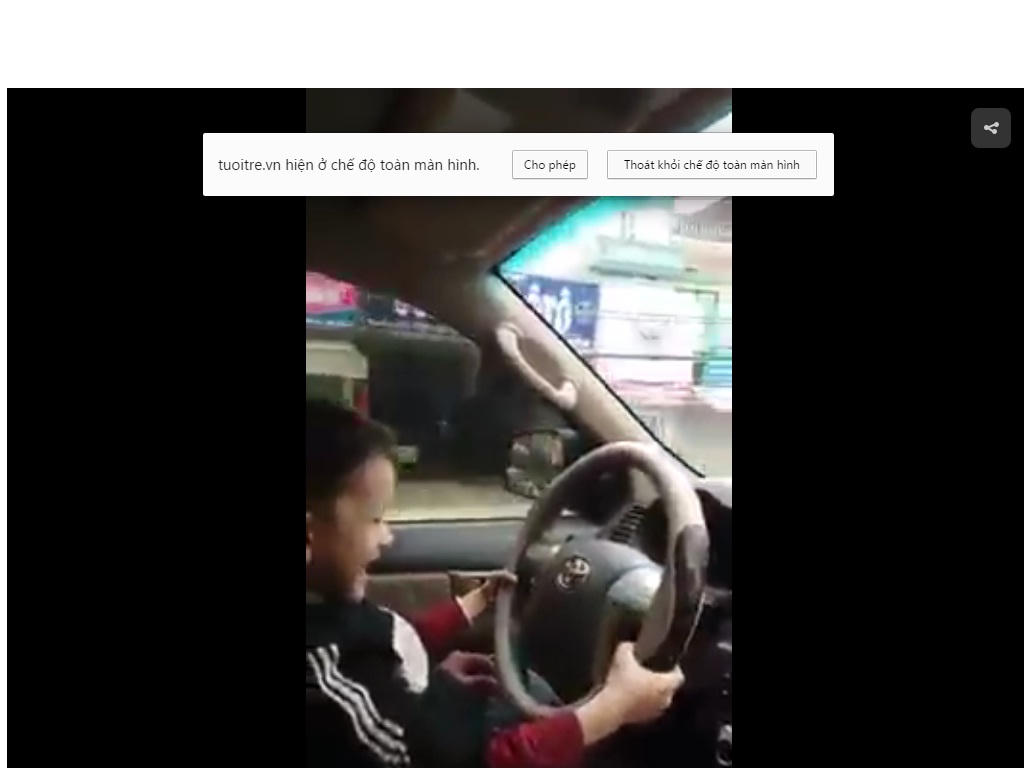 Theo hình ảnh và âm thanh từ clip, trên xe có cặp vợ chồng trẻ và cậu bé ngồi trong lòng bố ở ghế lái, nhưng chỉ thấy mặt cậu bé.