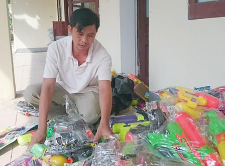 Tại hiện trường lực lượng chức năng đã lập biên bản thu giữ 200 khẩu súng nhựa và 50 kiếm nhựa là những đồ chơi trẻ em mang tính bạo lực nguy hiểm có nguồn gốc xuất xứ từ Trung Quốc. Anh Ban khai nhận, số hàng được nhập từ ngoài Bắc về để bán cho trẻ em dịp Tết Trung thu 2016 sắp tới.