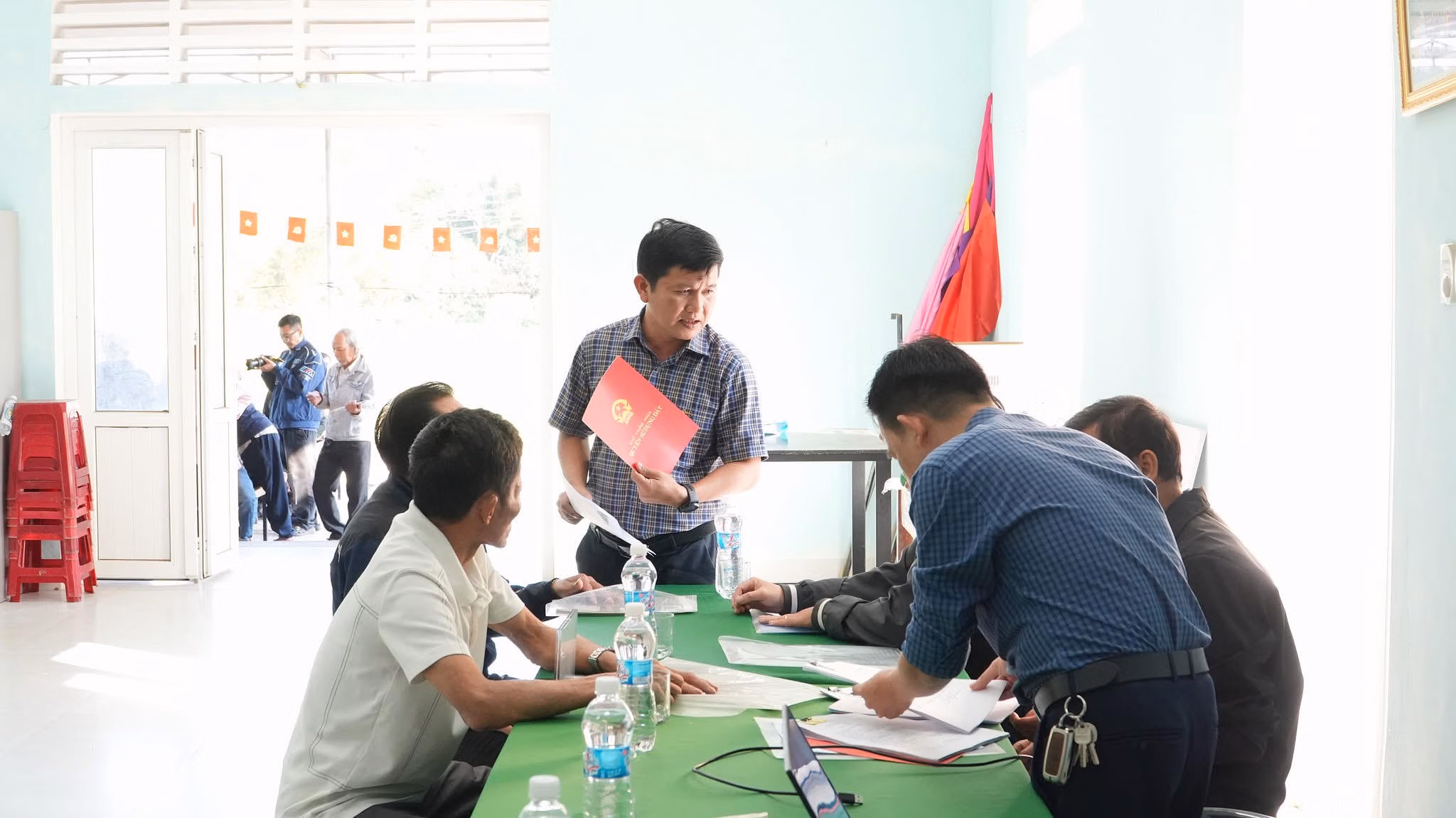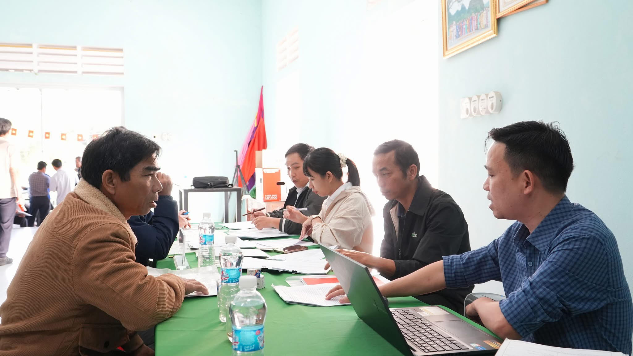 Tại Nhà văn hóa thôn 9, chị Nguyễn Thị Hà (người dân địa phương) cho biết, gia đình chị khai hoang mảnh đất từ nhiều năm trước nhưng do điều kiện khó khăn, không có thời gian đi lại trong giờ hành chính nên việc làm thủ tục cấp Giấy chứng nhận quyền sử dụng đất bị chậm. “Nay xã tổ chức làm việc ngay tại thôn vào ngày thứ Bảy, cán bộ hướng dẫn cụ thể, rõ ràng từng giấy tờ, giúp người dân đỡ vất vả, rất thuận lợi,” chị Hà chia sẻ.