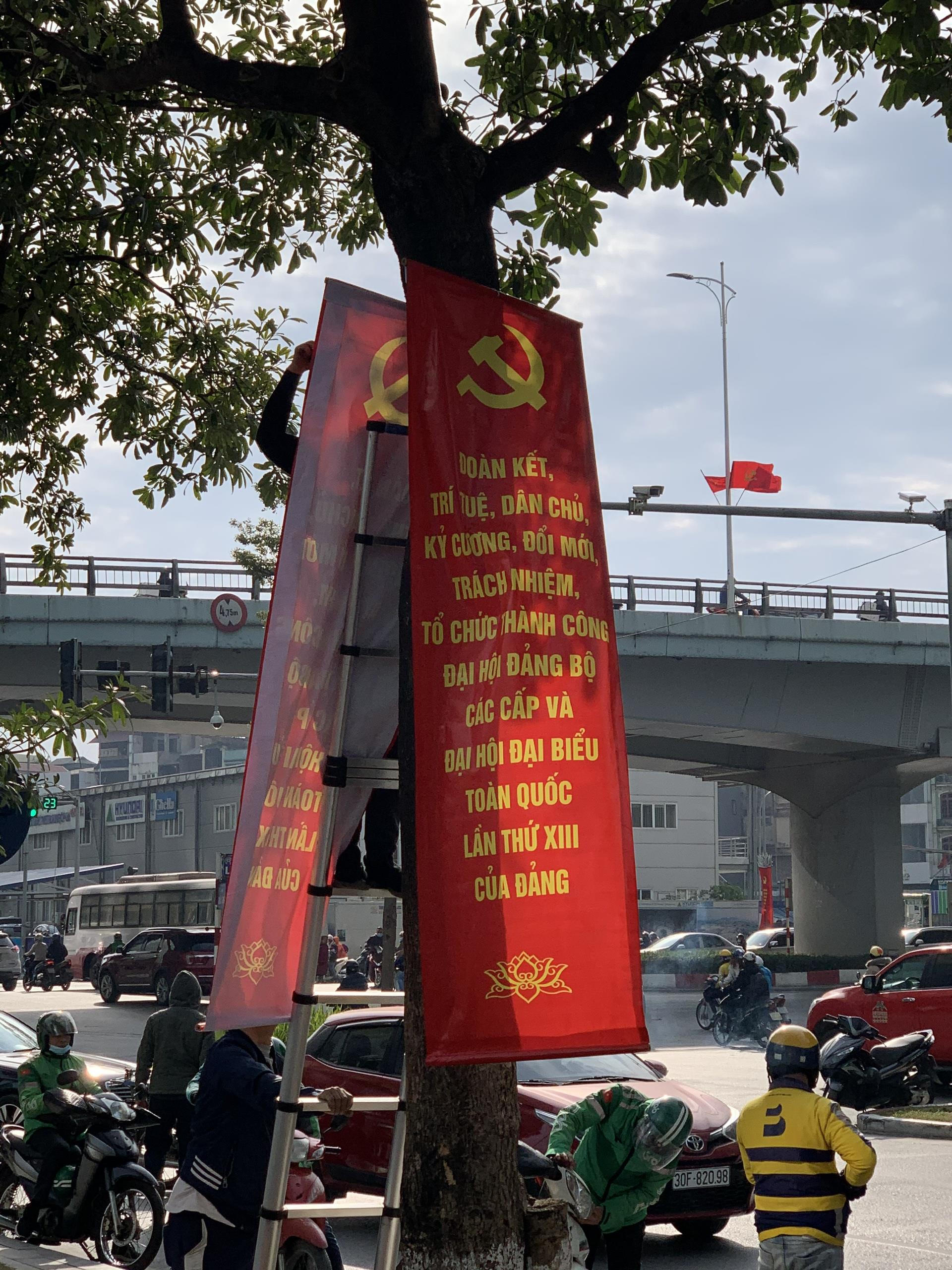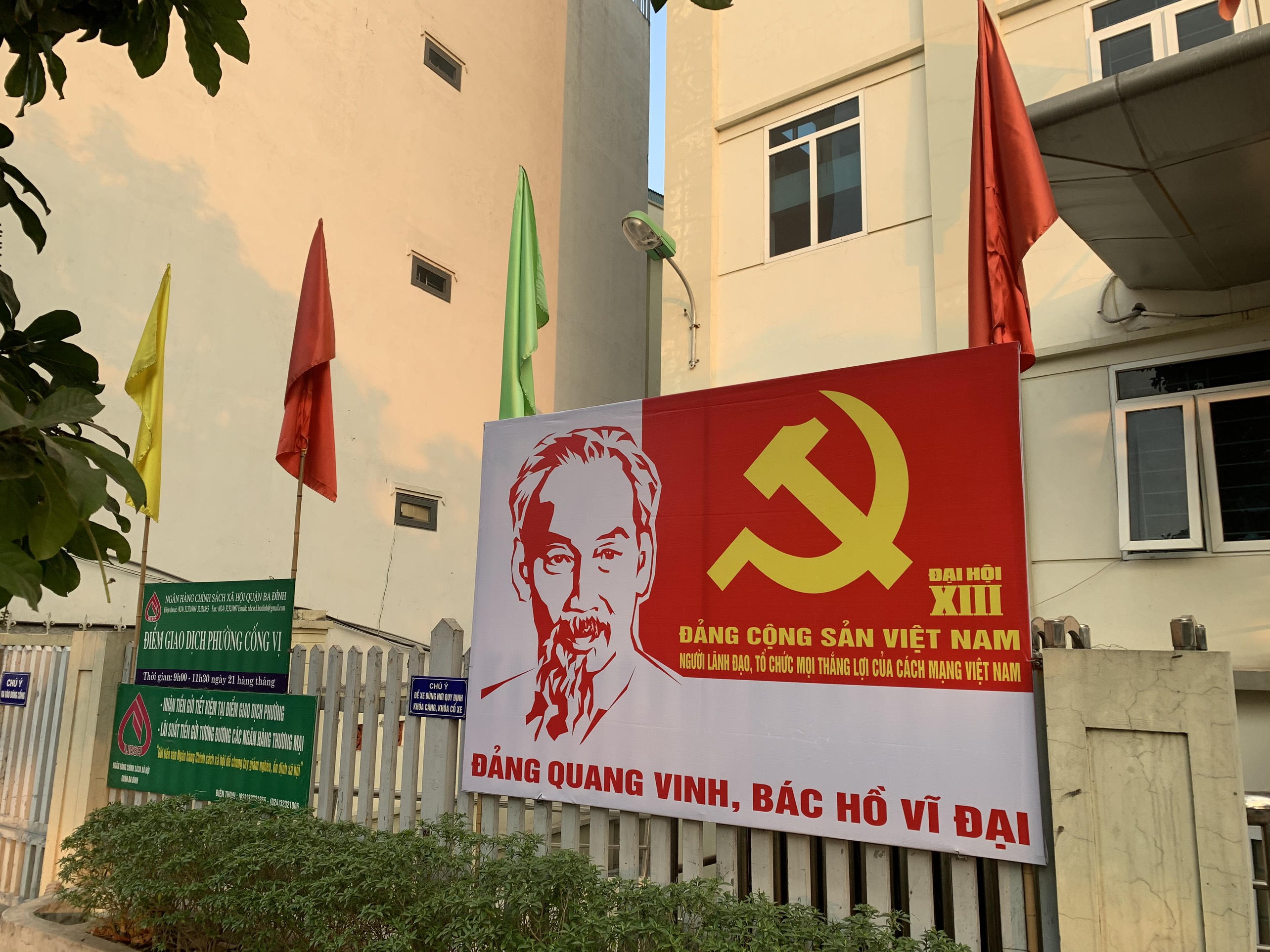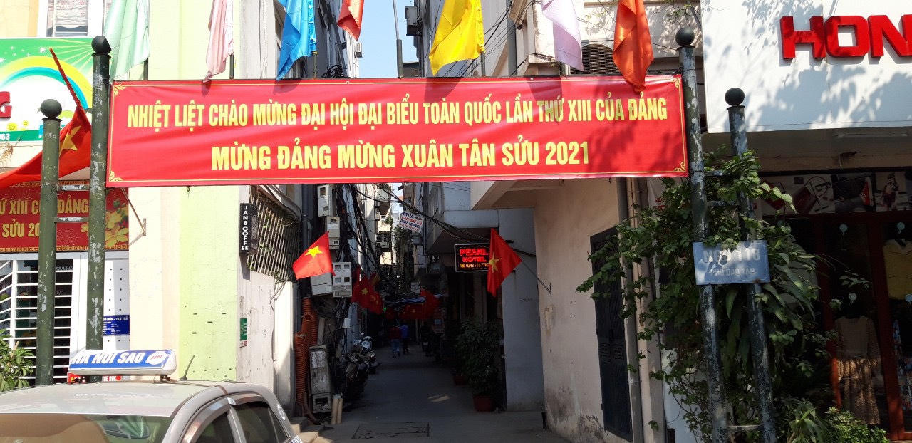 Phường Ngọc Khánh cũng khoác lên mình màu đỏ thắm trong công tác tuyên truyền chào mừng Đại hội Đại biểu toàn quốc lần thứ XIII của Đảng.