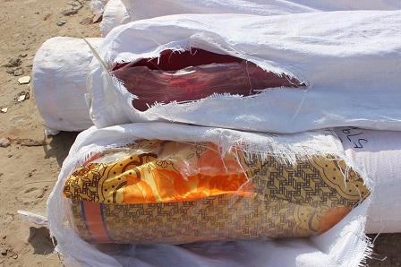 Đến sáng cùng ngày, Đội CSGT số 6 phối hợp Công an quận Cầu Giấy kiểm đếm tổng số hơn trăm kiện vải được bọc trong bao tải, mỗi kiện dài hơn 2m và có trọng lượng hơn 50 kg.