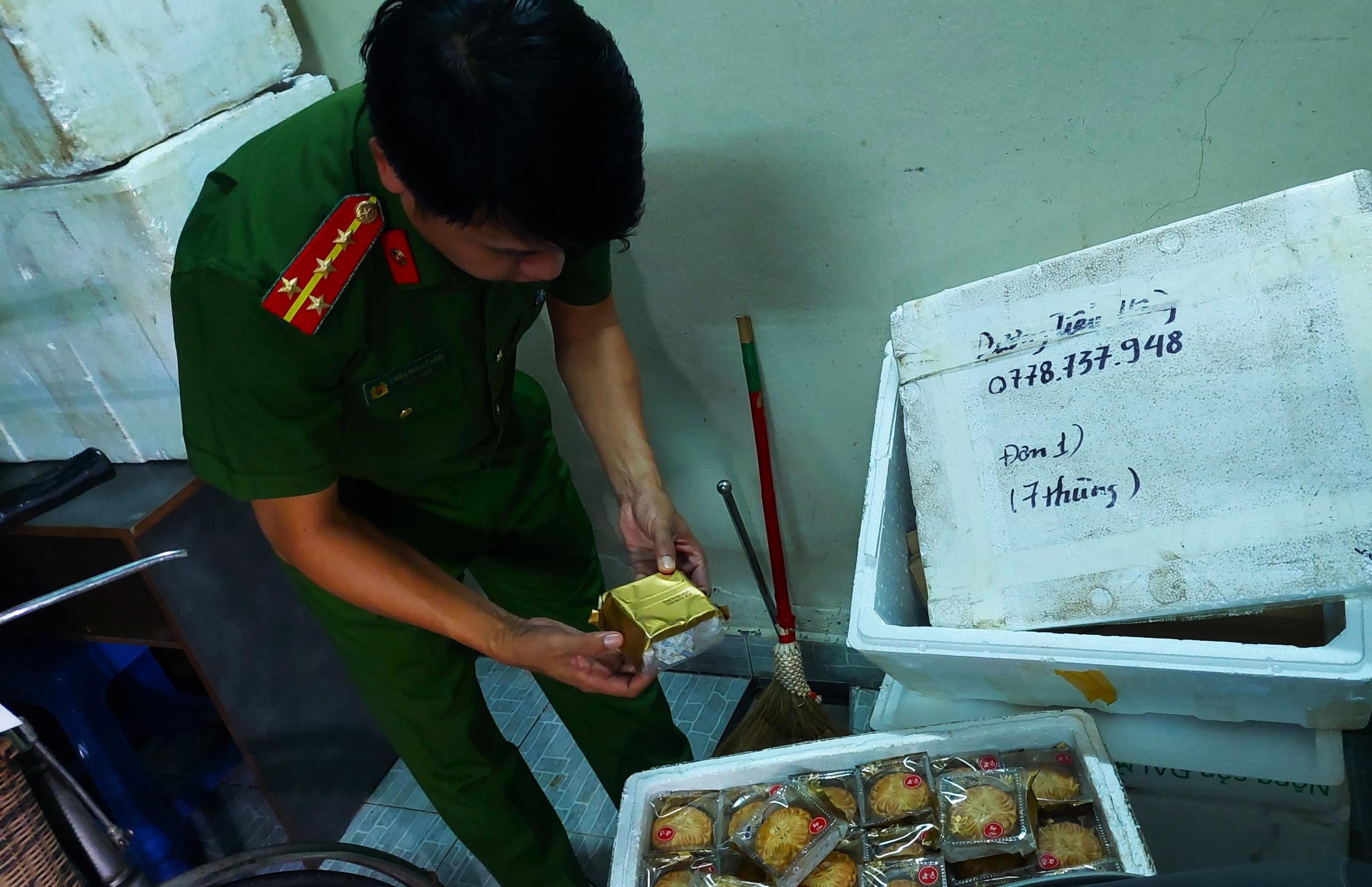 Thời điểm kiểm tra, chủ lô hàng trên là bà D.T.H (25 tuổi) không xuất trình được hóa đơn, chứng từ chứng minh nguồn gốc xuất xứ số bánh trung thu nói trên. Cơ sở này cũng không có giấy phép kinh doanh, không có giấy chứng nhận an toàn vệ sinh thực phẩm, giấy công bố chất lượng sản phẩm.