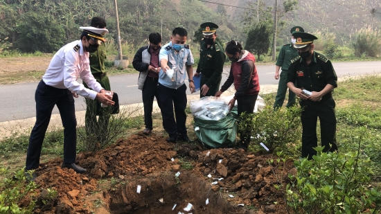 Hiện, Đồn Biên phòng cửa khẩu Ma Lù Thàng cùng các lực lượng chuyên ngành tại cửa khẩu đã tiến hành lập biên bản tịch thu hàng, xử phạt hành chính đối tượng Tẩn Mí Dao và đã tiến hành tiêu hủy số thuốc nói trên.